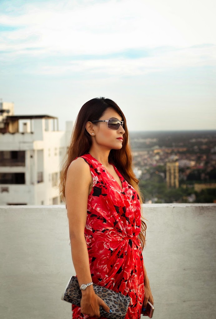 So I thought why not starting to unwind in the real wind?! I was wearing this red dress which is super light & perfect to enjoy the breeze. This dress has everything to make you fall in love with it if you want to enjoy the summer season. It’s made of a light and silky fabric and it’s not transparent either because it’s in bright red colour. Plus, it has floral print to compliment the summer ambiance.I paired it up with leopard printed handbag from Steve Madden &Â leopard printed pump shoes from Charles & Keith to create an all-printed look.